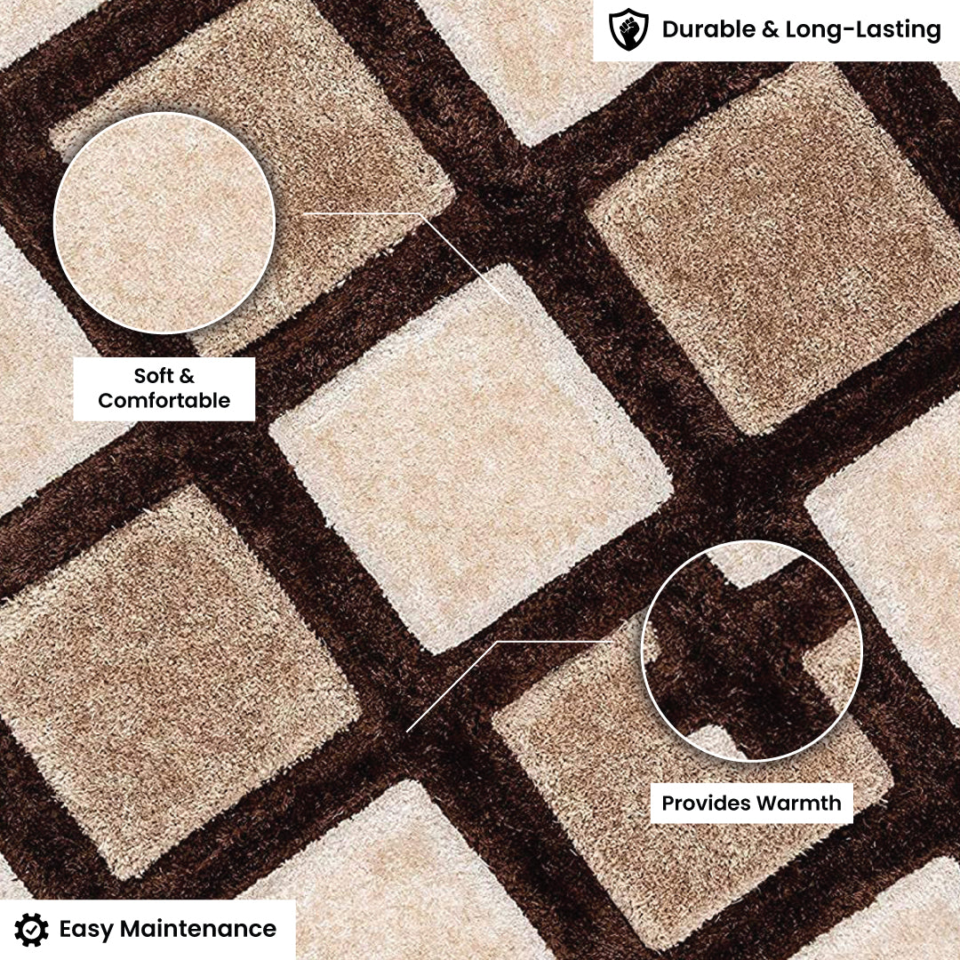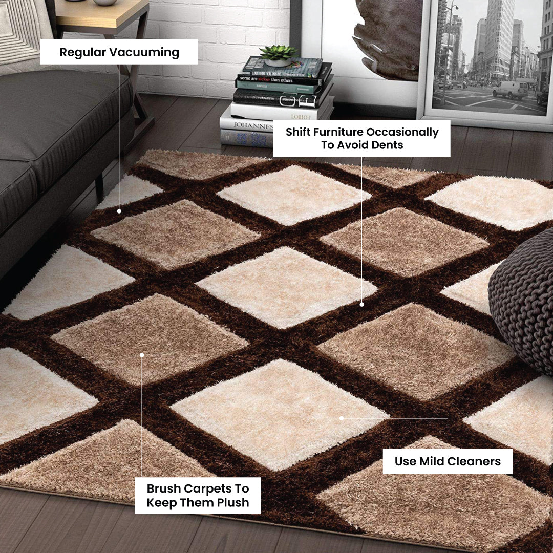 Unleash your free spirit with the Boho Checkmate , a luxurious shaggy carpet from Rugs & Roses’ Bohemian Inspired Collection. Crafted from ultra-soft microfiber yarn using advanced power loom techniques, this rug showcases a bohemian-inspired check pattern in rich brown, warm coffee, and crisp cream tones, infusing any space with a bold yet artistic touch that celebrates eclectic charm.