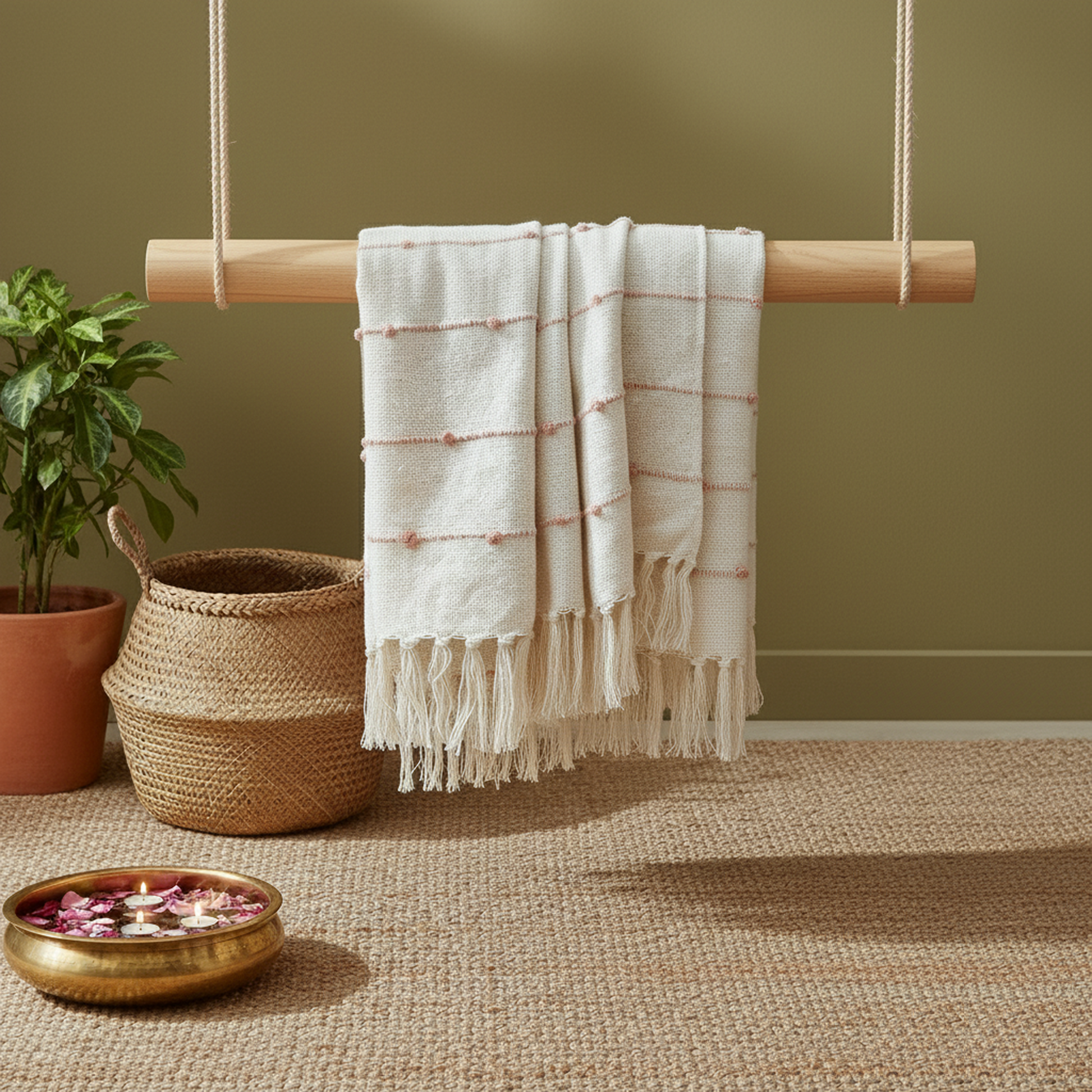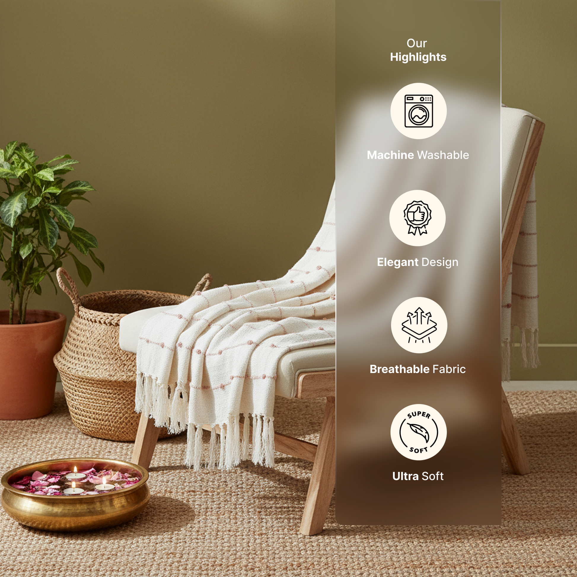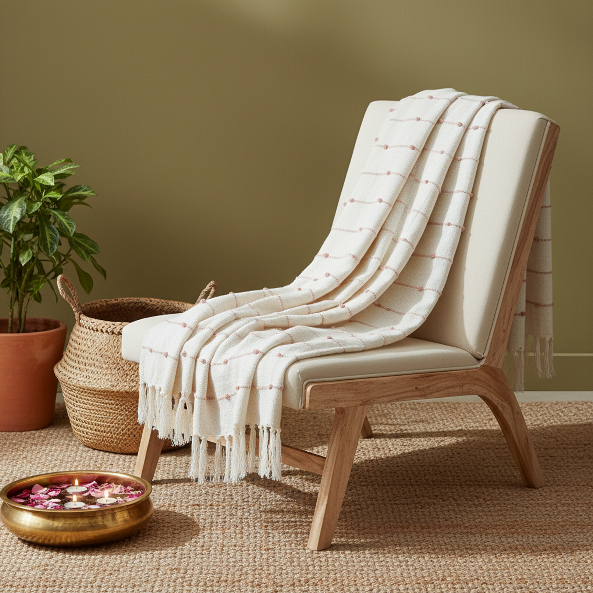 Immerse yourself in the luxurious comfort of Rugs & Roses Pure Cotton Throws, where artisanal craftsmanship meets timeless elegance. Hand-knitted by Panipat artisans using 100% premium-quality natural cotton blended with other premium fabrics, these throws offer a soft, breathable, and skin-friendly embrace, free from harmful chemicals or synthetic dyes—safe for kids, pets, and the environment. Measuring 82x52 inches, they’re generously sized for sofas, beds, chairs, or travel, providing all-season comfort with a lightweight cozy feel, perfect for summer evenings or winter nights. Available in a variety of colors, patterns, and custom designs, each throw adds a unique, textured charm to living rooms, bedrooms, or offices, doubling as a sofa cover, bed throw, or decorative piece. Crafted with durable threads, they resist wear and fading, and are machine-washable with mild detergent, retaining softness and vibrancy. A perfect gift for housewarmings, weddings, or festive occasions, Rugs & Roses throws bring sustainable style and elevated beauty to any space.