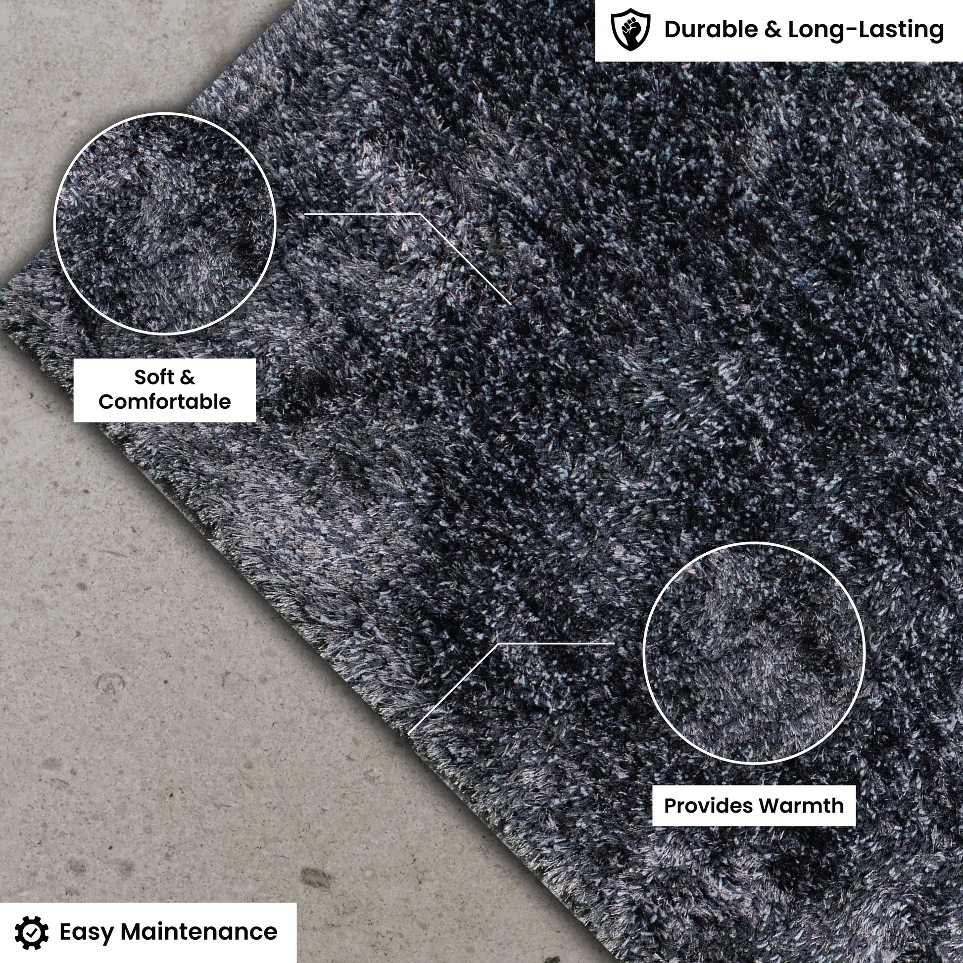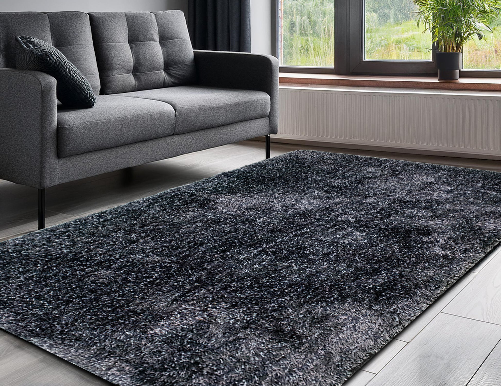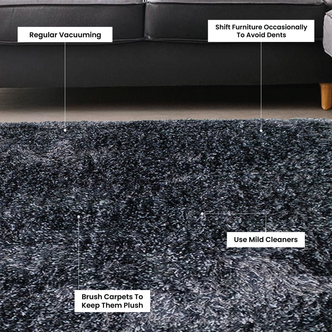 Step into plush luxury with the LushLoom Aqua, a breathtaking grayish-blue shaggy carpet from Rugs & Roses’ Minimalistic Collection. Handcrafted by Bhadohi’s skilled artisans using advanced power loom techniques, this single-color masterpiece is spun from ultra-soft microfiber yarn, boasting a 1-2 inch deep pile that offers unrivaled comfort. With a high-density cotton backing, it promises durability, non-slip stability, and timeless resilience.