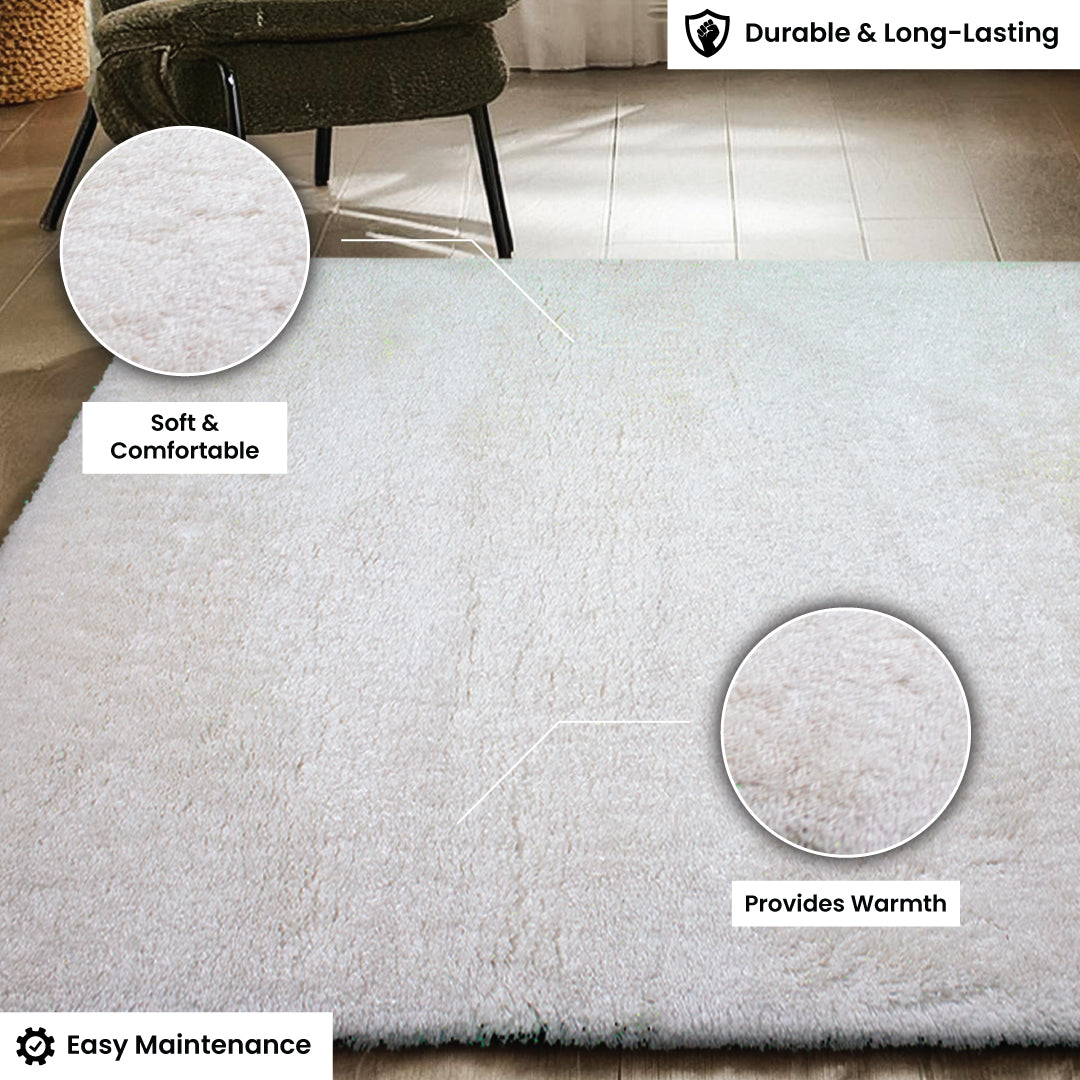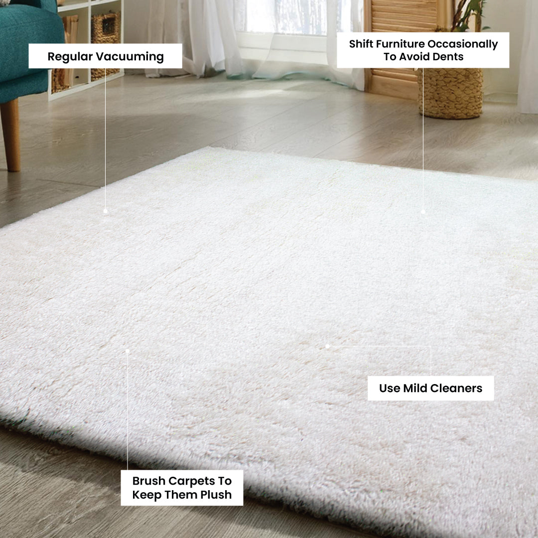 Step into a world of pure serenity with the LushLoom Dewdrop, a pristine white shaggy carpet from Rugs & Roses’ Minimalistic Collection. Handcrafted with mastery by Bhadohi’s skilled artisans using cutting-edge power loom techniques, this single-color marvel is woven from ultra-soft microfiber yarn. With its 1-2 inch deep pile, it delivers unrivaled comfort, while a high-density cotton backing ensures durability, non-slip stability, and lasting refinement.