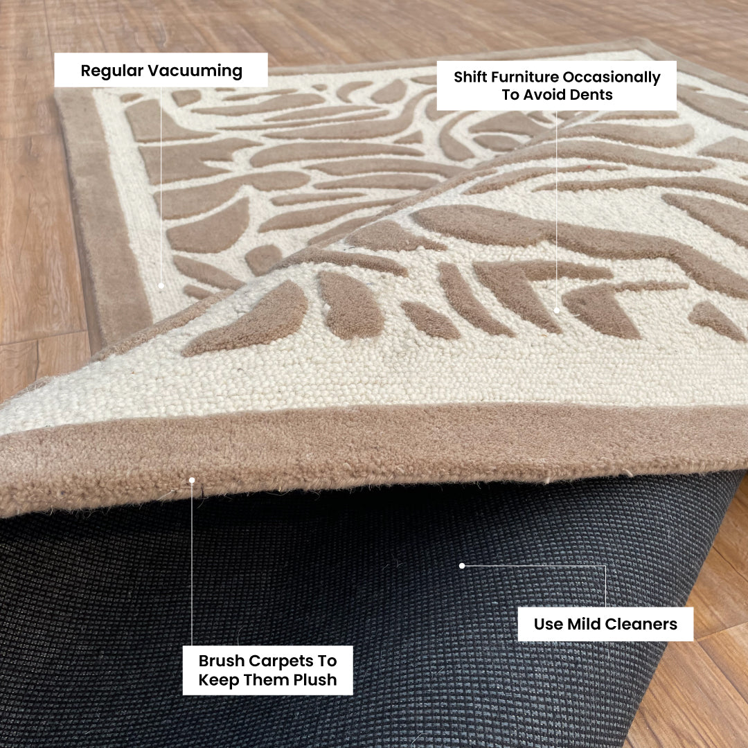 - To keep your Rugs & Roses pieces looking beautiful, vacuum regularly using a suction-only attachment to avoid damaging fibers .