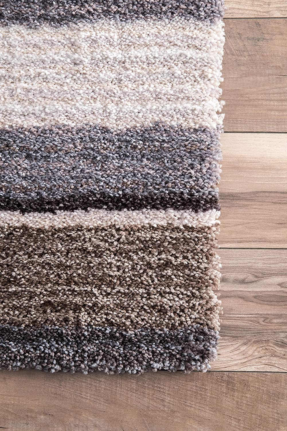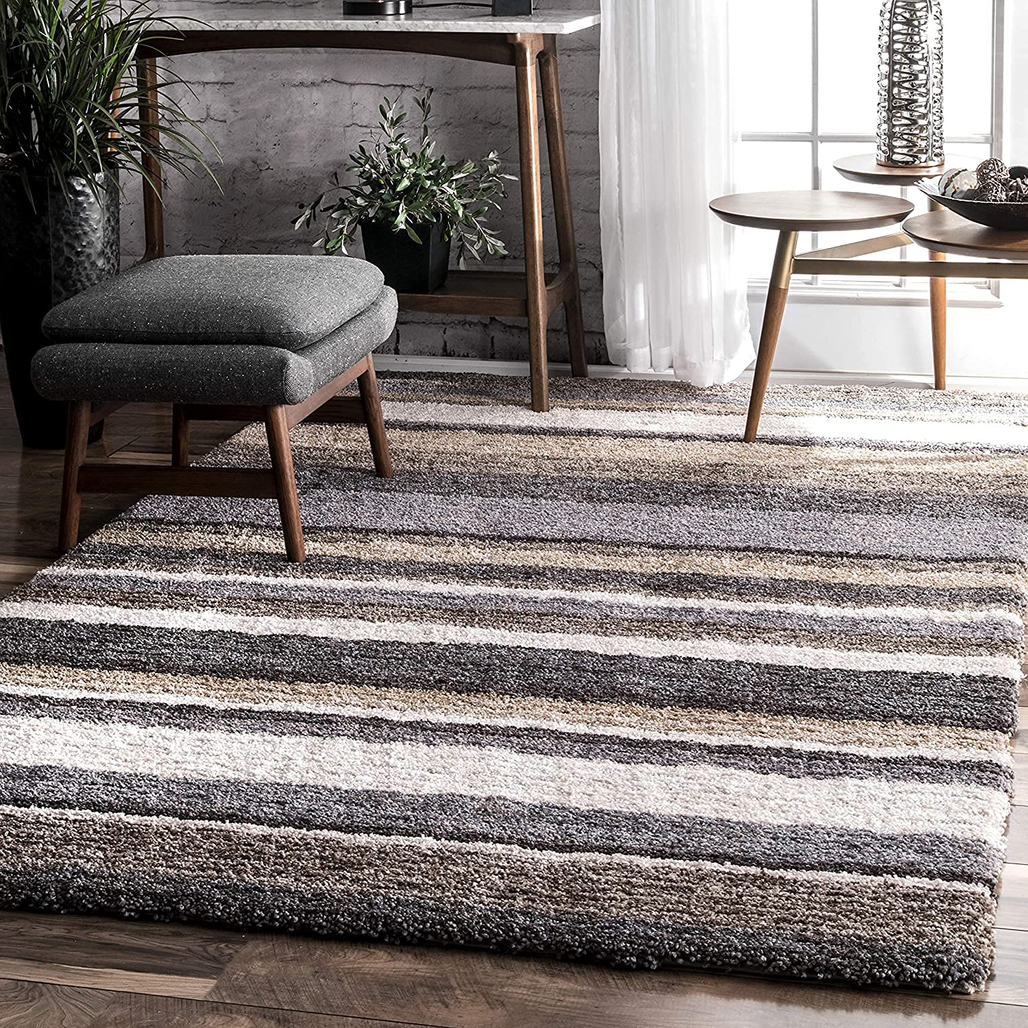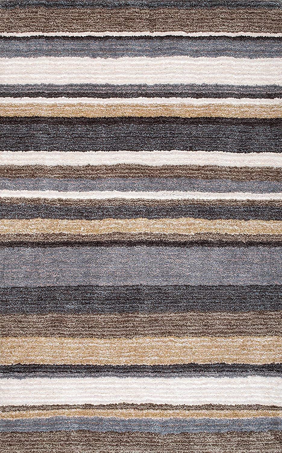 Inspired by nature’s layered terrain, Sandstone from the ModMood Collection by Rugs & Roses blends modern abstraction with earthy sophistication. This shaggy carpet features a horizontal fusion of grey, brown, beige, and white—woven into a seamless, multicolored pattern that gives an overall cool-toned grey appearance from afar.