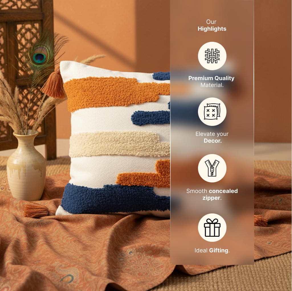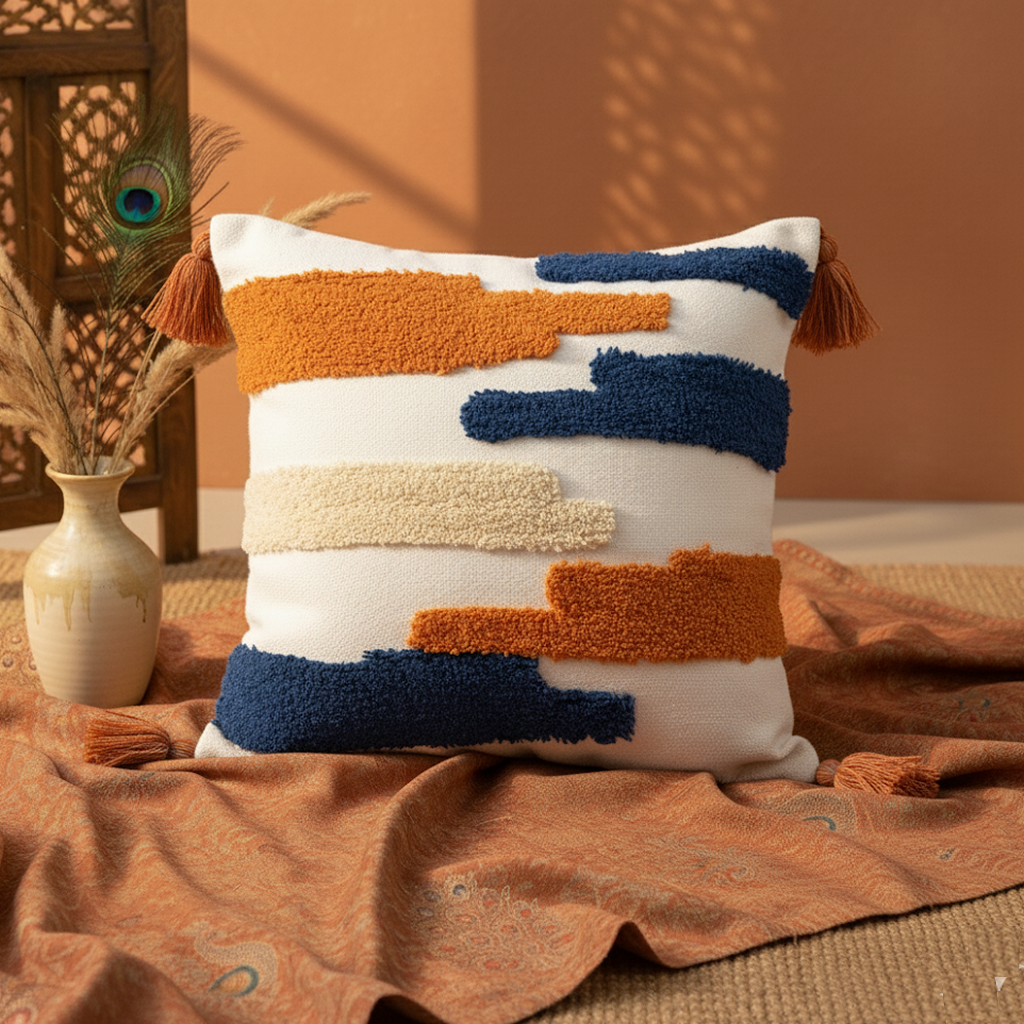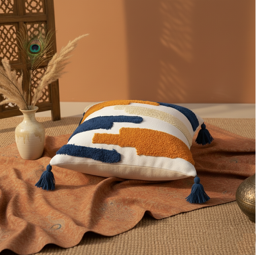 Celebrate with the Summer Bloom Cushion Cover – Boho Vibrance by Rugs & Roses!! Bring the vibrant hues of summer into your home with our exquisite "Summer Bloom" Cushion Cover. Handcrafted by skilled artisans in Panipat under the renowned brand Rugs & Roses, this piece is more than just a decorative item—it’s a celebration of artistry and seasonal beauty. The Summer Bloom cushion features a lively palette of colors with abstract patterns, evoking the warmth and energy of summer. Each cover is a unique creation, reflecting the individual craftsmanship of our artisans, and made with high-quality materials to add a touch of elegance and comfort to any room.