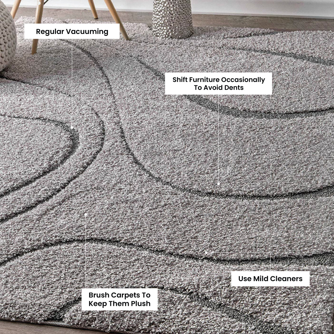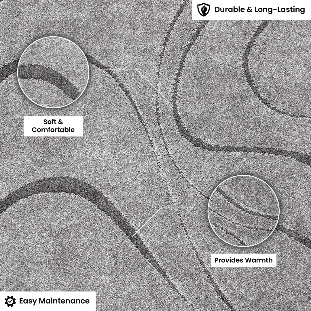 With a plush 1-2 inch deep pile, the Velvet Weaves Grey rug offers velvety softness and unparalleled comfort, while its high-density cotton backing ensures durability, non-slip stability, and enduring quality. The harmonious play of grey-on-grey wavy lines creates a sophisticated, understated look, perfectly suited for contemporary, minimalist, or eclectic interiors.