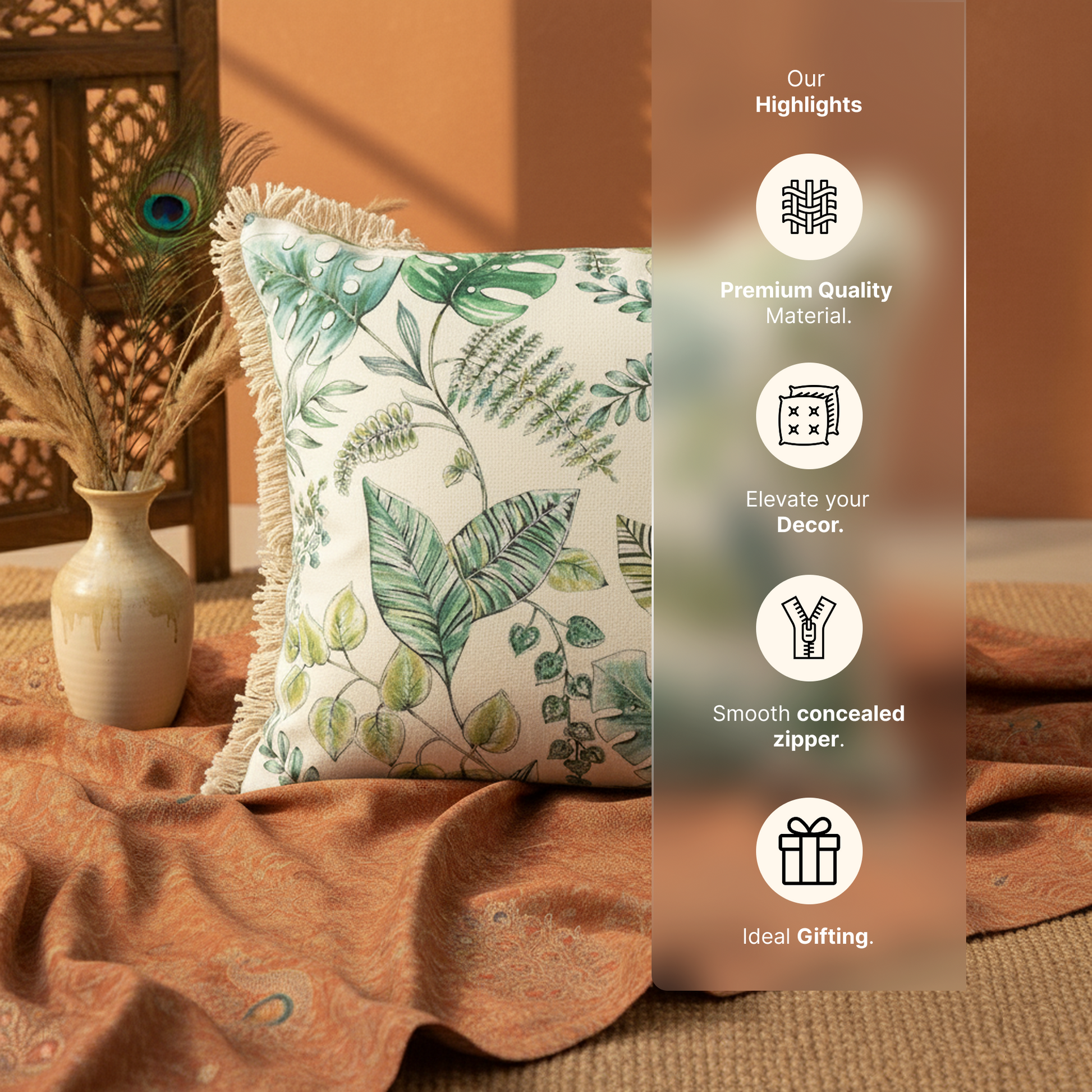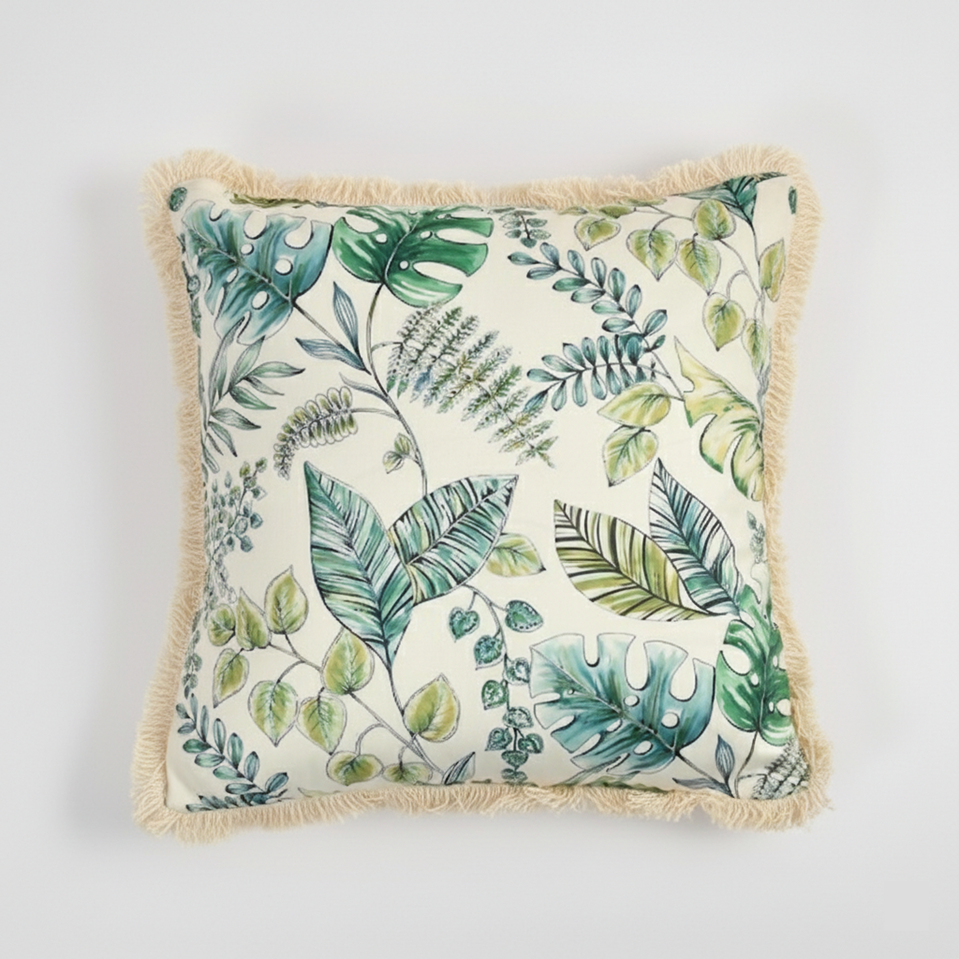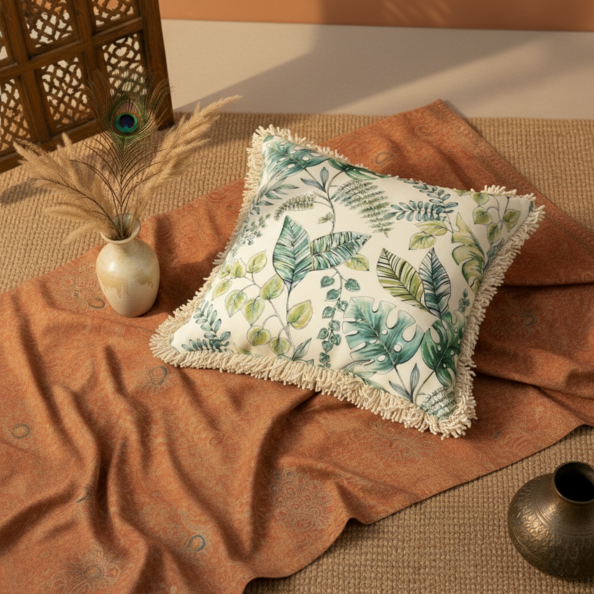 Infuse your home with serene elegance using the Willow Whisper cushion cover from Rugs & Roses, masterfully crafted by skilled artisans in Panipat. This exquisite cover showcases a delicate green and teal botanical pattern against a crisp white background, capturing the gentle rustle of willow leaves in a soft breeze. The intricate design brings the tranquility of nature indoors, crafting a calming and inviting ambiance for any space.